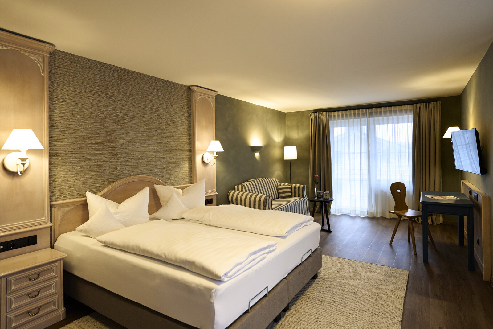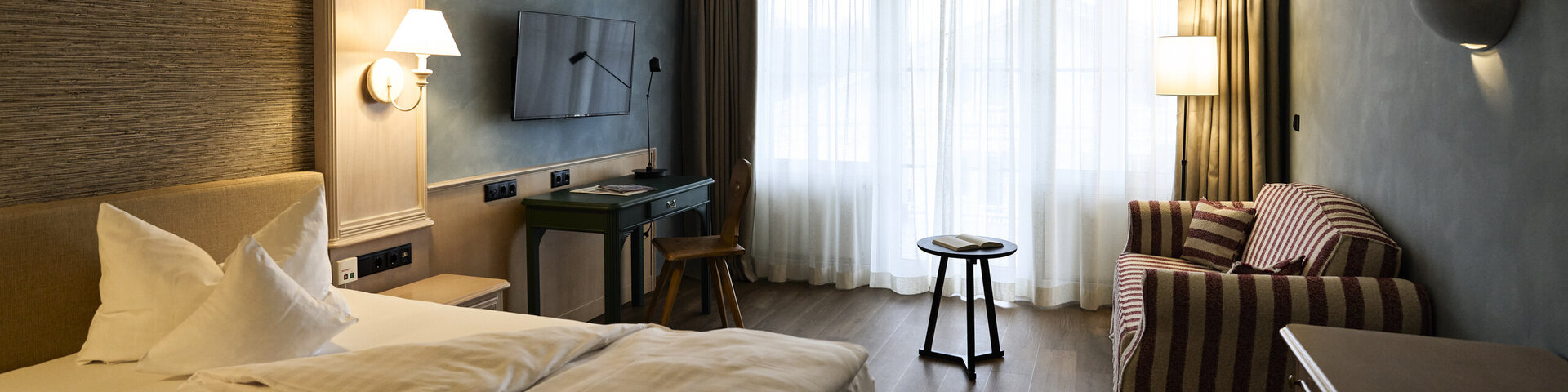Unsere Standardzimmer bieten Ihnen hellen, freundlichen Wohnkomfort in zeitlosem Stil. Jedes Zimmer ist individuell eingerichtet und sorgt mit gemütlicher Atmosphäre dafür, dass Sie sich während Ihres Aufenthalts rundum wohlfühlen. Diese Zimmer stehen Ihnen standardmäßig zur Verfügung und erfordern keine zusätzliche Zuzahlung.