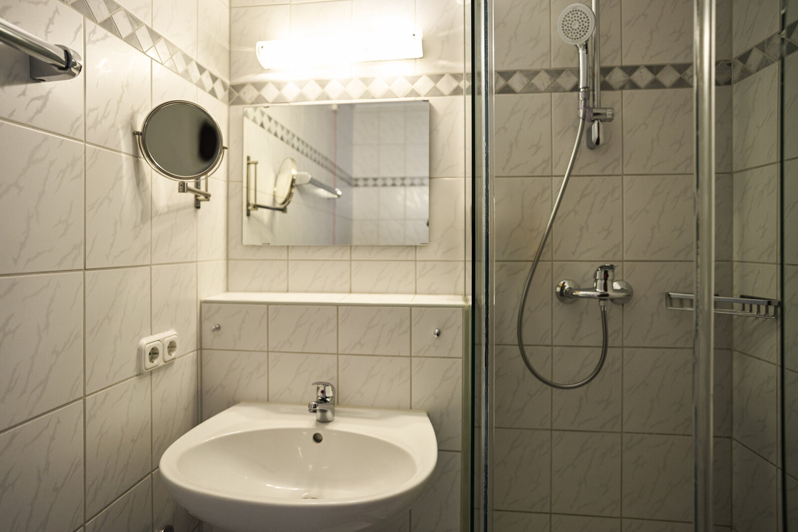 - Föhn und Kosmetikspiegel im Badezimmer